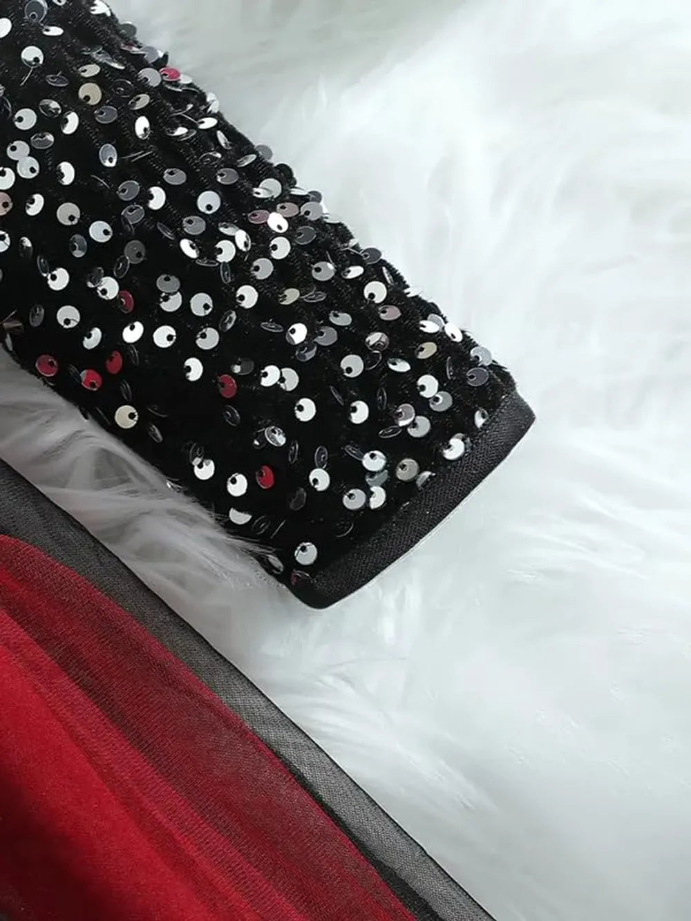 Presenting the Girls' Dazzling Sequin & Tulle Party Dress – a masterpiece designed to make your little one shine at every special occasion. This stunning garment seamlessly blends modern elegance with playful charm, ensuring she feels like the belle of the ball.